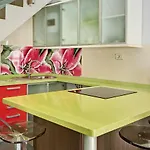 V pokojích je umístěno balkón, psací stůl a ovládání klimatizace, i rychlovarnou konvici, troubu a kuchyňské nádobí.